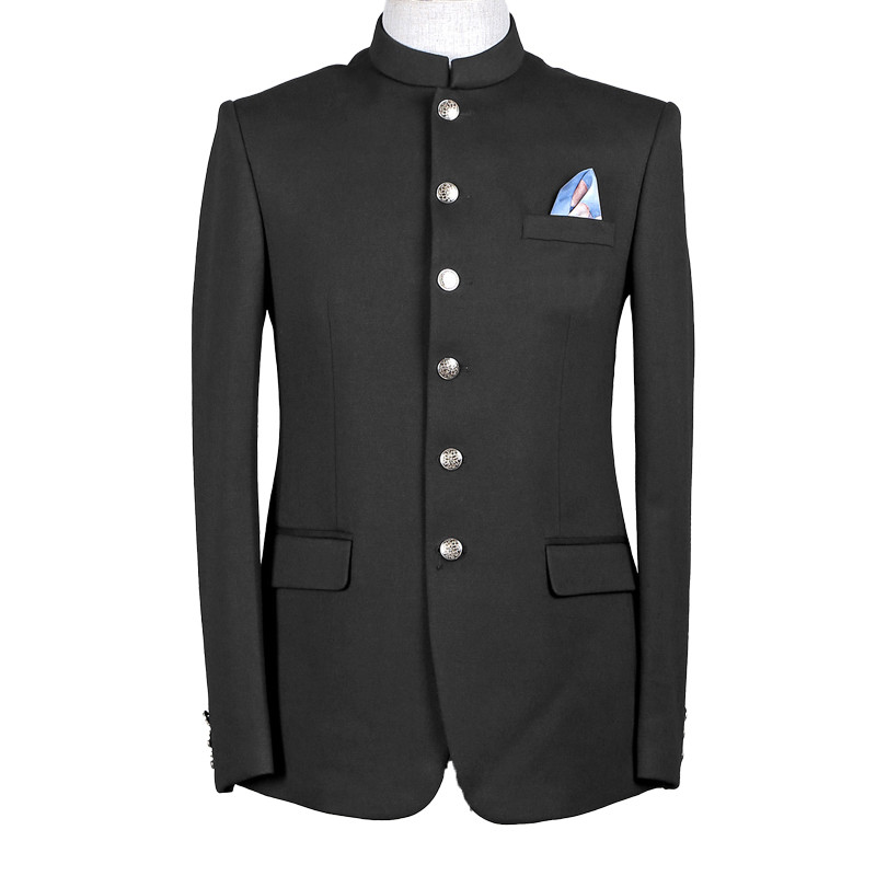 Solid Party Business Casual Suit Jacket Stand Collar Blazer Mens With Pocket Tie For Reception Images |